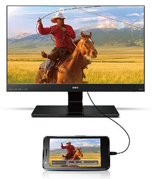 Connect your smart device to the new EW40 Series and indulge in the premium picture quality that is has to offer. The MHL connection ensures flawless streaming from any MHL-equipped smart device, allowing you to enlarge and optimize any content displayed on your smart device effortlessly. With this feature, you can browse websites, watch videos, play games and even go over various documents on a full 24” or 27” screen – without having to turn on your computer at all.